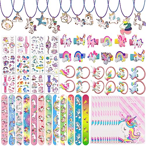 BOIKOKY 122 st enhörningsfestgåvor för pojkar och flickor, enhörning, födelsedagsfest, tillbehör för flickor, inklusive enhörning, smällarmband, halsband, klistermärken, pinata, present, enhörning,