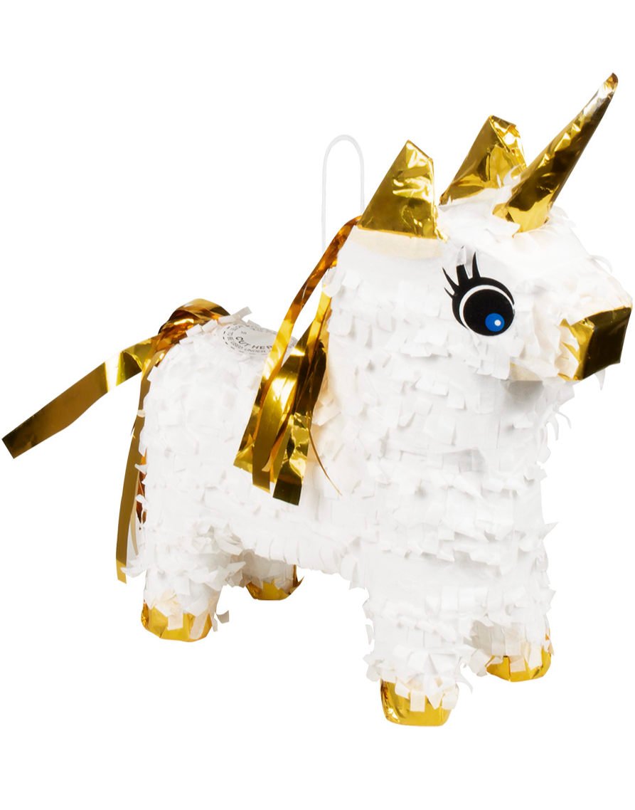 Vit och Guldfärgad MINI Enhörning Pinata 21x16 cm - Unicorn Gold