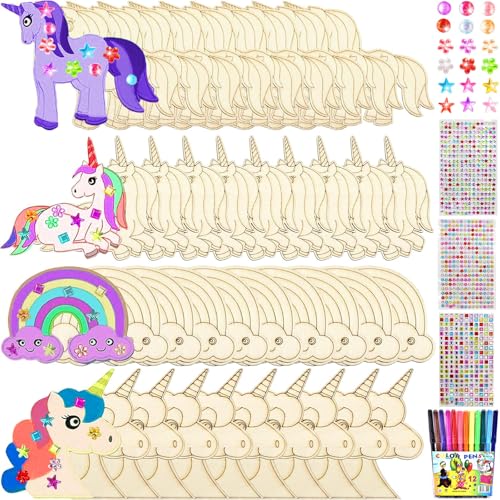 Enhörning pysselset, 40 stycken enhörning pysselset träkit, enhörning trä pysselset barns födelsedag enhörning hantverk för målning, pyssel barn födelsedagspresent flicka 6 år gör-det-själv enhörning