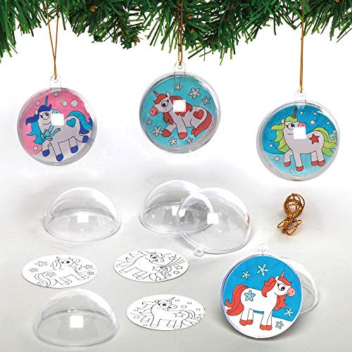 Baker Ross AX350 Enhörning, julkula att färga, pysselset för barn – 8 stycken, festliga kreativa set och pysselbehov för pyssel och dekoration till jul