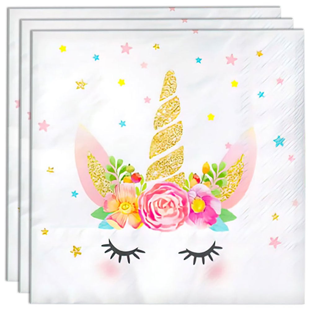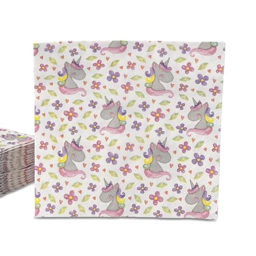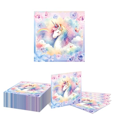 Kotkiddy 40 Enhörning Papper Servetter för Party med Regnbåge Dekorativ Middag 33 x 33 cm (A)