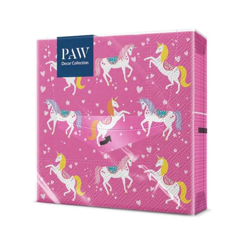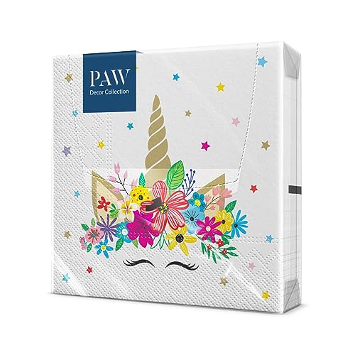 PAW – servetter 3 lager (33 x 33 cm) I 20 stycken I perfekt för fester, födelsedagar, fester I barnkalas bordsdekoration – färgglada pappersservetter med motiv – enhörning evenemang I enhörning blomma