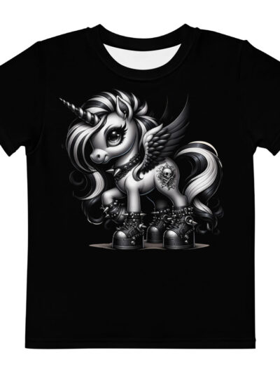 Enhörning T-shirt kortärmad crew neck bomull, svart, 9 år