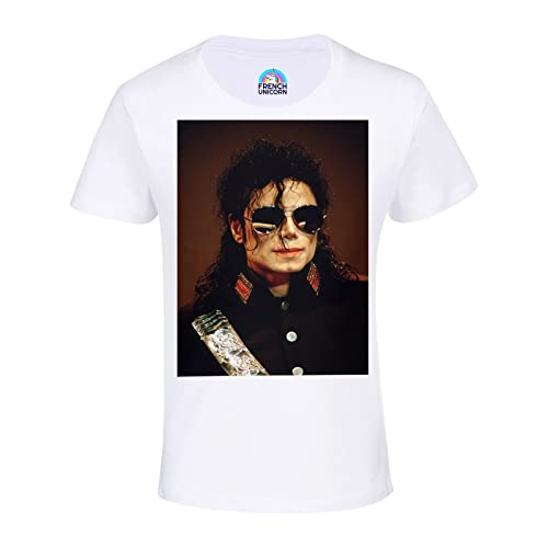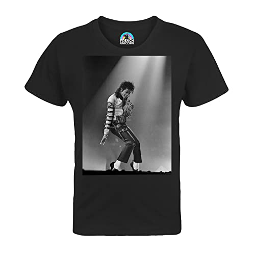 French Unicorn Michael Jackson blandad T-shirt för barn fotokonsert svart och vit popstjärna sångare kändis, svart, 12 �r