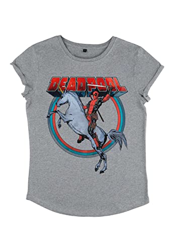 Marvel Kvinnors Deadpool On Unicorn Rolled Sleeve T-shirt, melange grå, XL, Melange grå, XL