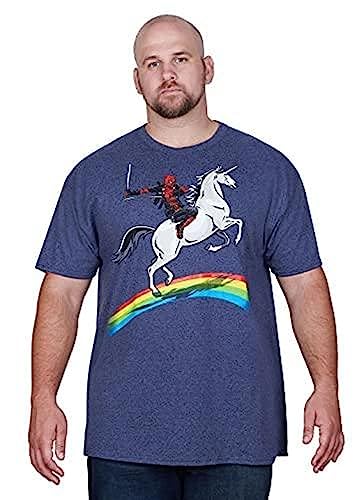 MARVEL Deadpool Riding a Unicorn on a Rainbow T-shirt, Marinblå ljung, XL