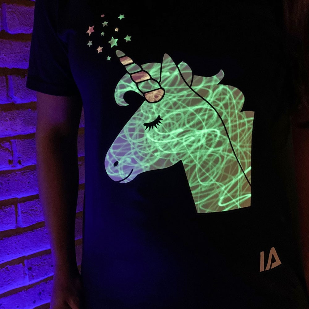 Splat Planet Glow-In-The-Dark T-Shirt, Enhörning