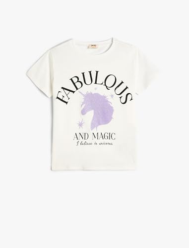 Koton Girls's Crew Neck Short Sleeve Unicorn Tryckt T-shirt, Ecru (010), 6-7 �r