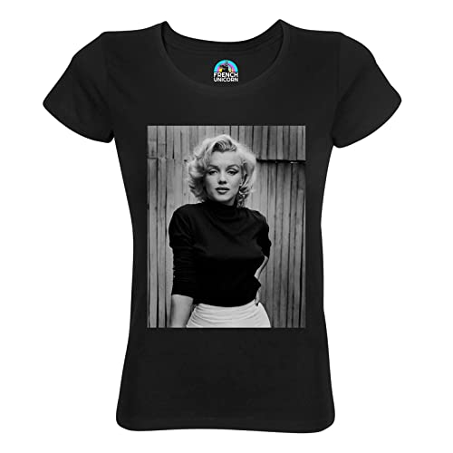 T-shirt dam ekologisk bomull rund hals Marilyn Monroe porträtt stjärna Hollywood retro foto, svart, M