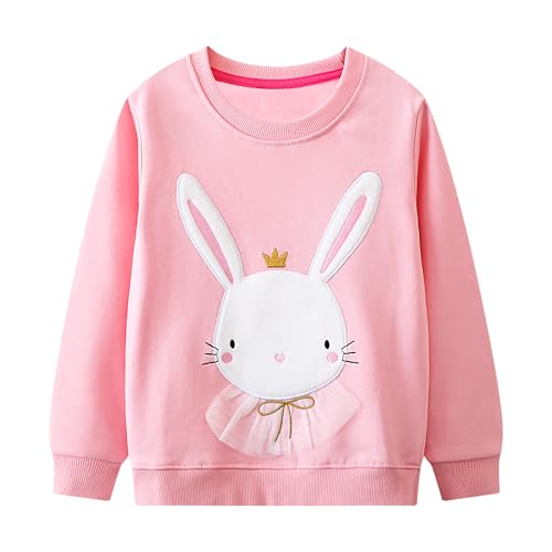JinBei Flicka T-shirt Långärmad Tröja Rund Hals Tröja Tröja Enhörning Pull-Over med Bomull Ledig Topp 2 3 4 5 6 7 år, Kanin, 92-98