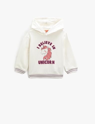 Koton Babyflickor enhörning tryckt huva borstad interiör långärmad tröja, Ecru (010), 18-24 Monate