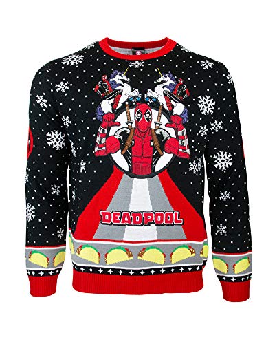 Officiell Deadpool enhörning jultröjor för män eller kvinnor – fula nyhetsgåvor jultröja – officiellt licensierad Marvelstickad tröja design