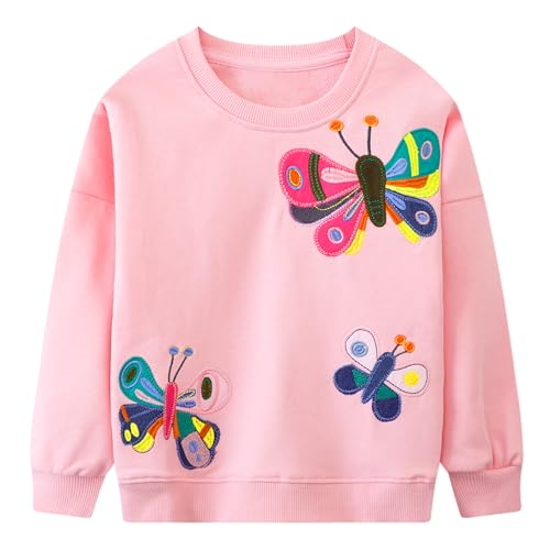 JinBei Sweatshirt för flickor barn tröja bomull topp casual jumper småbarn enhörning häst tryck långärmad skjorta ålder 2–7 år, storlek 92–122, fjäril, 110-116
