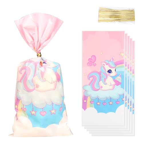 mciskin Personlig enhörning presentinslagning cellofanpåsar för enhörning temafest små tomma väskor enhörning goodie-väska godispåse kakor presentpåsar med slipsar för födelsedag bröllopsfest