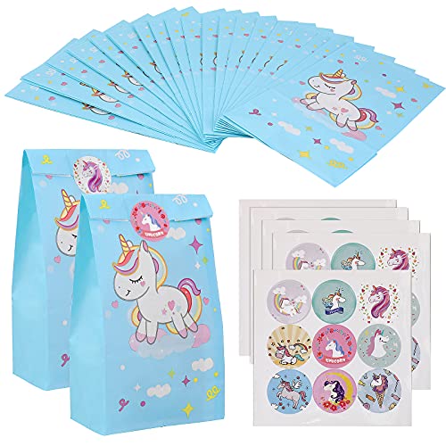 PHOGARY 20 Enhörning papperspåsar, med 45 Regnbåge Magisk Enhörning Klistermärken - Enhörning Party Tjänst Väskor Födelsedagsfesttillbehör, Goodiebags för tjejer