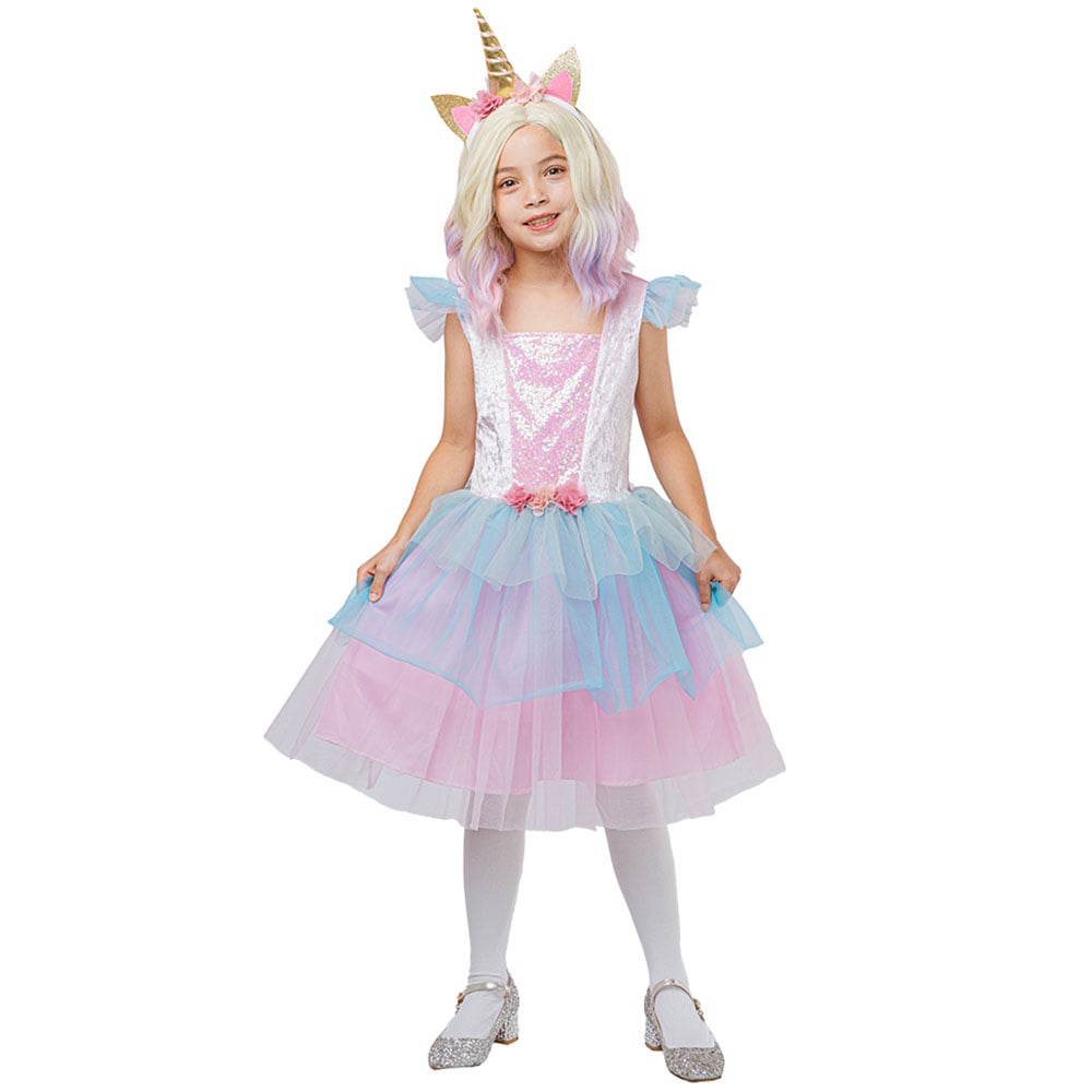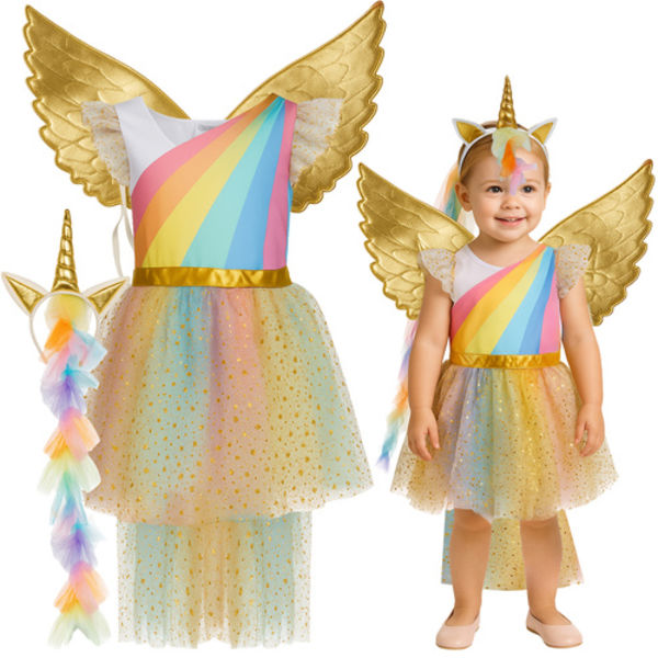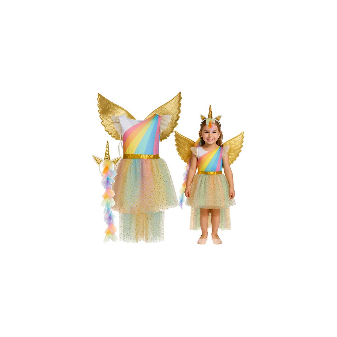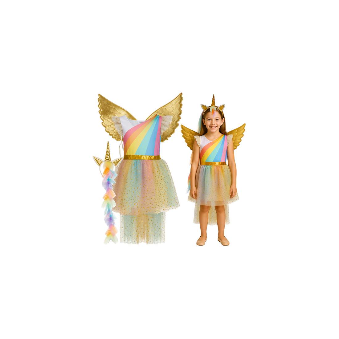 Enhörningsdräkt för barn, klänning, vingar och pannbandsset