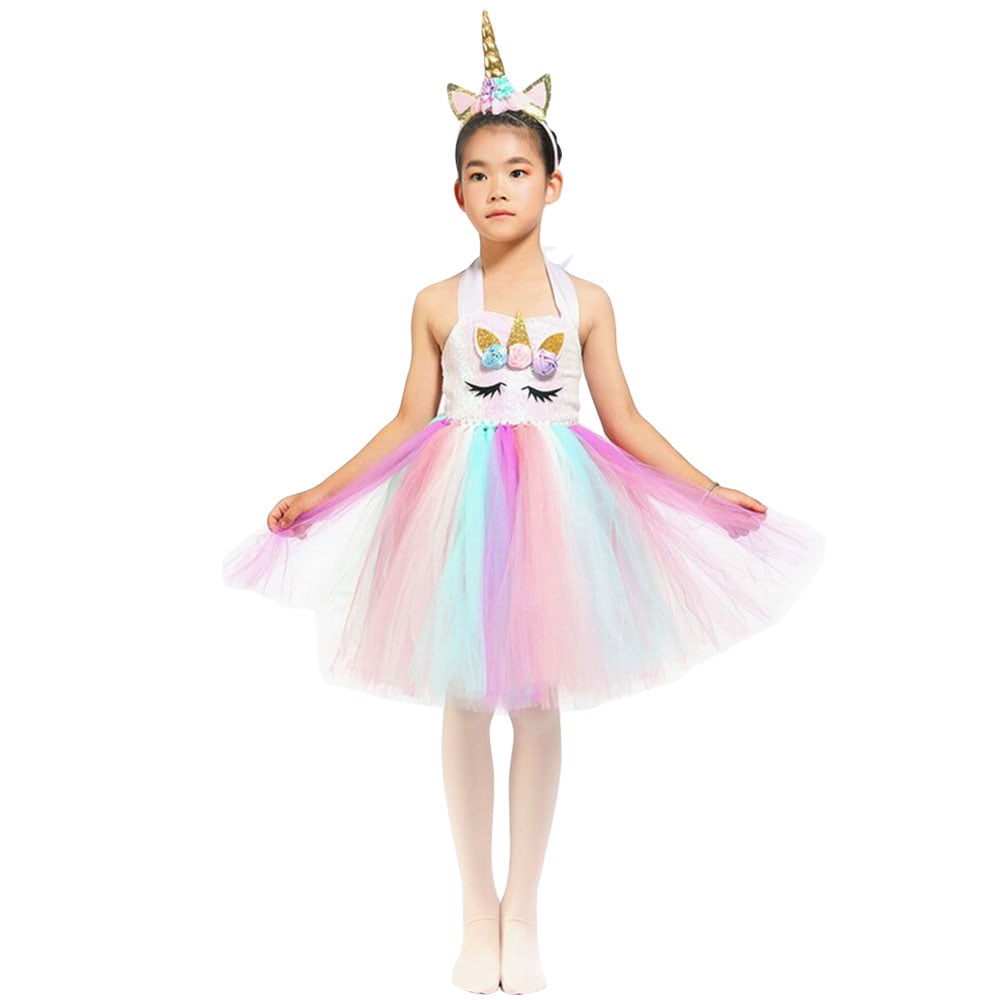 Prinsessa flicka, enhörningsdräkt, prinsessklänning för barn, kostym flicka med bandage halsbandsset, enhörning, cosplay, klänning för barn, födelsedag, fest, halloween, jul, karneval