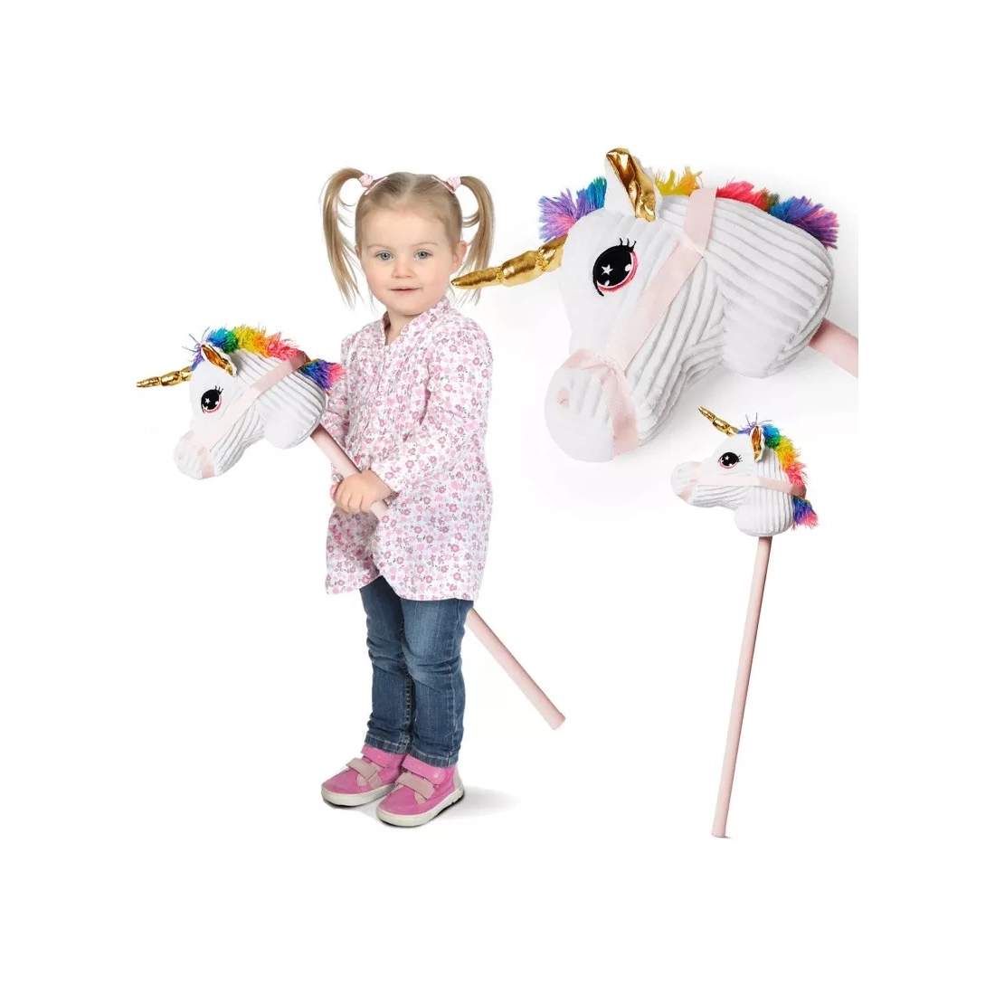 Hobbyhäst enhörningshuvud på pinne plysch 78 cm