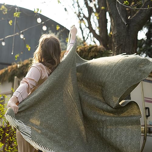 OT ECO Ullfilt Grön Oliv Pläd, 140 x 220 cm, 100% Jungfrulig ull från Nya Zeeland, 140x200 (exkl fransar), Mjukt Varmt överkast, För Fåtölj/Soffa/Säng, Enkel/Dubbel, Alla säsonger