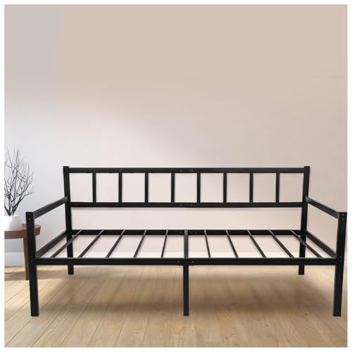 Dagssäng - 90x190 Sängar, ramar och baser - Soffasängar - Sängram 90x190 - Enkel dagssäng med sängunderlag - Enkelsängramar - Metallsängram för enkel säng - Svart bäddsoffa med metallsängram