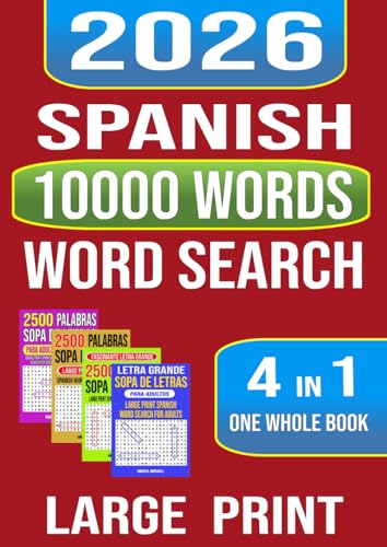 Spanish Large Print 10000 Words Word Search 4 in 1 One Whole Book: 10000 Palabras Sopa de Letras en Español Para Adultos Un Libro Entero 4 en 1 - Letra Grande