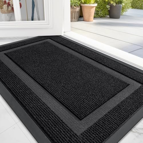 Homaxy Dörrmattor inomhus utomhus, kraftiga gummidörrmattor, halkfri lätt att rengöra golvmatta, smutsfångare vattenabsorberande mattor för kök, ytterdörr, entré och trädgård, 60 x 90 cm, svart