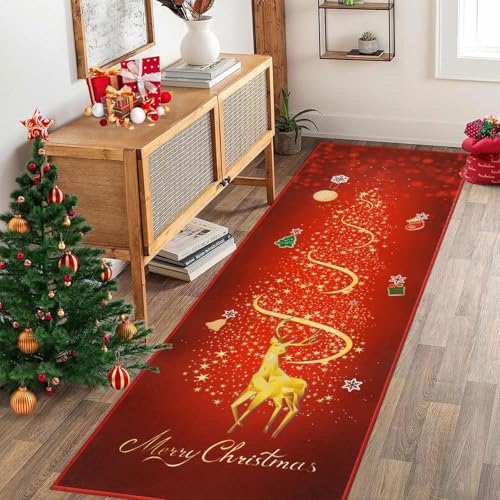 SHACOS Julmatta löpare 60 x 180 cm god jul löpare mattor för hall juldekorationer välkommen dörrmatta löpare juldekor golvmatta löpare för hall, entré, vardagsrum