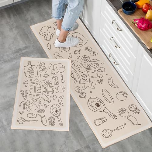 Fecialy Köksmatta set 2 delar, mattlöpare mattor och mattor halkfri tvättbar kökslöpare matta 43 x 75 + 43 x 120 cm golvmatta för hall entré tvätt förutom