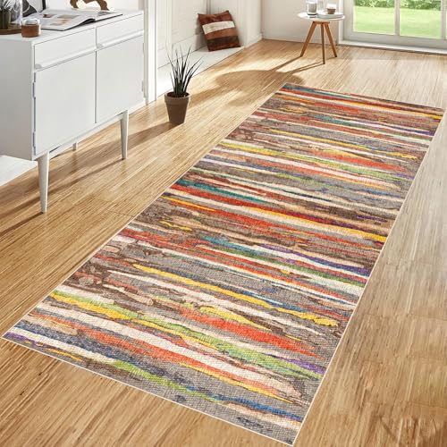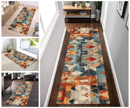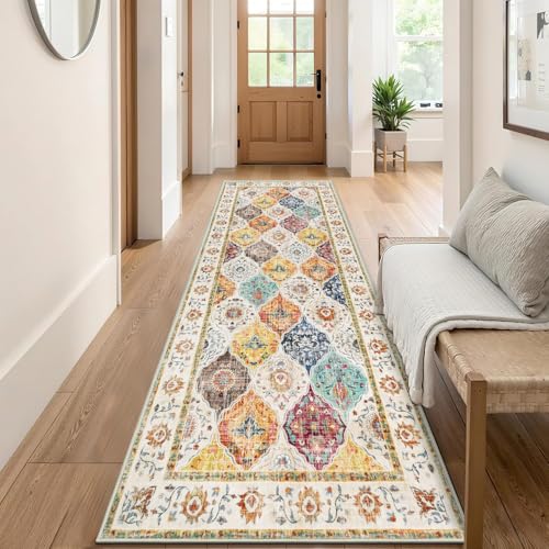 SHACOS Löparmattor för hall halkfri 60 x 240 cm extra lång halllöpare vintage nödställda mattor tvättbara köksgolvmatta löpare mattor för entré sovrum tvättstuga, färgglad
