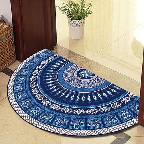 Gäst Ruyunlai halvrund dörrmatta inomhus entré tvättbar halvcirkel område mattor boho mandala halkfri blå 625-18 modeller 70 cm x 120 cm