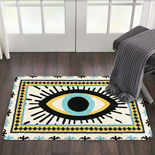 HAOCOO Blå onda ögat mattor 5 x 8 cm halkfria tribal stil små prydnadsmattor supermjuk sammet kreativ accent sliten golvmatta för dörrmatta entré sovrum dekor