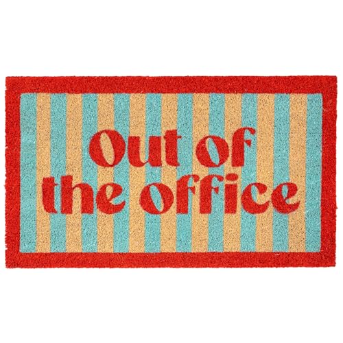 Fisura – Coconut of The Office Home Out of The Office dörrmatta med halkfri PVC-bas, handmålad röd och blå inomhusdörrmatta, entrématta hem med roligt meddelande 70 x 40 cm