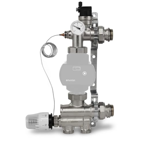 ENVIRON – fast värdesregleringsset 20–55 °C med högeffektiv pump | lämplig för golvvärme pumpgrupp | Mässing: CW 617N O – nickelpläterad (Wilo Para 25/6)