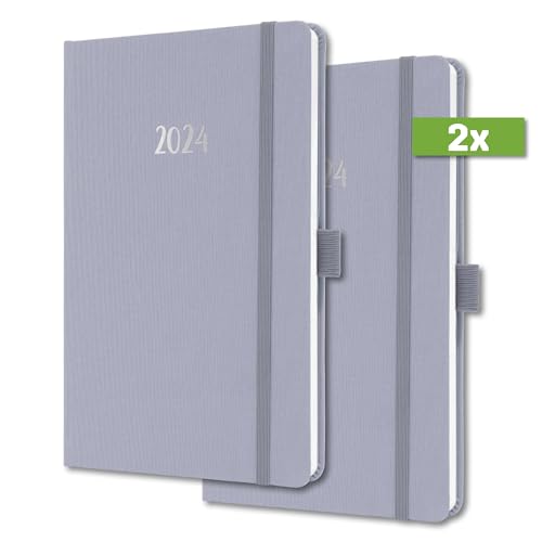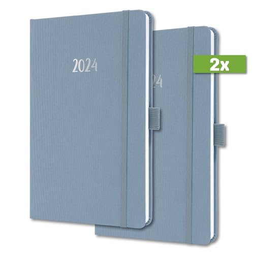SIGEL J4401 Agenda semainier Jolie 2024, certifiering FSC, 2 sidor = 1 semaine, couverture rigide à couverture en näsduk, environ A5, bleu, 174 sidor, 2 stycken
