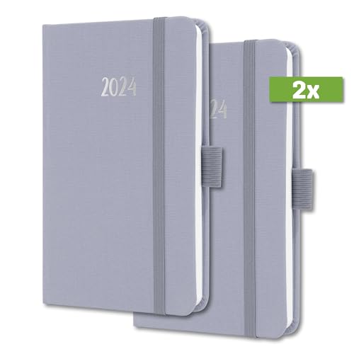 SIGEL J4406 Agenda semainier Jolie 2024, certifiering FSC, 2 sidor = 1 semaine, couverture rigide à couverture en näsduk, environ A6, lilas, 174 sidor, 2 stycken