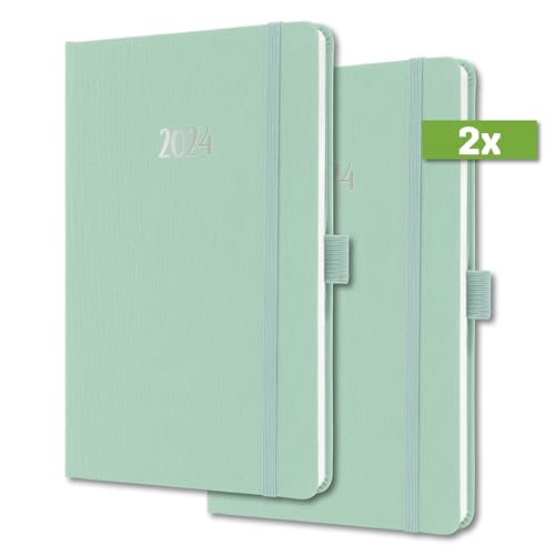 SIGEL J4409 Agenda semainier Jolie 2024, certifiering FSC, 2 sidor = 1 semaine, couverture rigide à couverture en näsduk, environ A5, vert menthe, 174 sidor, 2 stycken