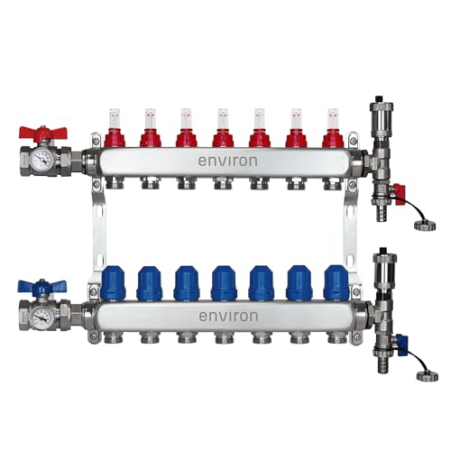 ENVIRON – Värmekretsfördelare [2–12 värmekretsar] med kulventilsats och snabbuppfläktsats | golvvärme (7 värmekretsar)