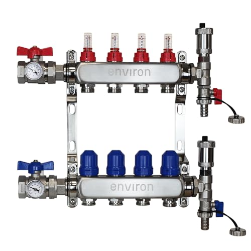 ENVIRON – Värmekretsfördelare [2–12 värmekretsar] med kulventilsats och snabbuppfläktsats | golvvärme (4 värmekretsar)