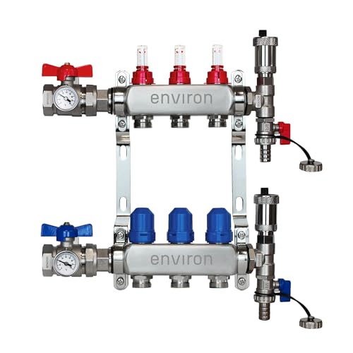 ENVIRON – Värmekretsfördelare [2–12 värmekretsar] med kulventil set och snabbuppfläktsats | Uppvärmning golvvärme (3 värmekretsar)