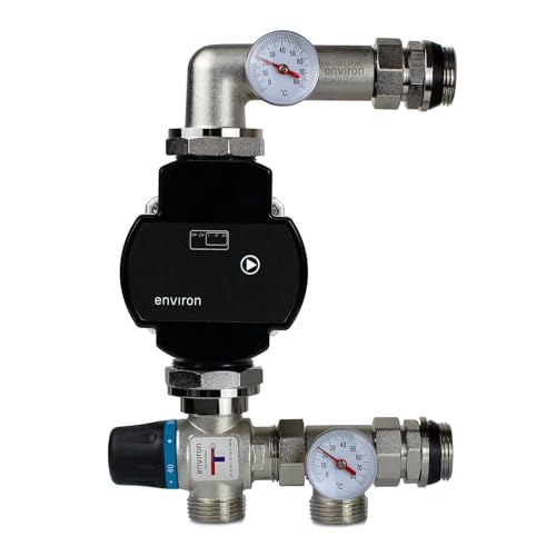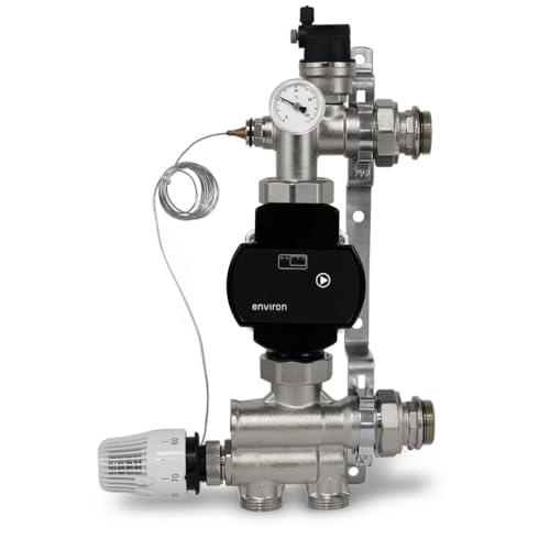 ENVIRON – fast värdesregleringsset 20–55 °C med högeffektiv pump | lämplig för golvvärme pumpgrupp | Mässing: CW 617N O – nickelpläterad (Environ Ecostar II 25/6)