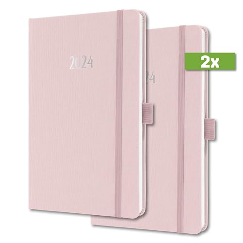 SIGEL J4404 Agenda semainier Jolie 2024, certifiering FSC, 2 sidor = 1 semaine, couverture rigide à couverture en näsduk, environ A6, rose clair, 174 sidor, 2 stycken