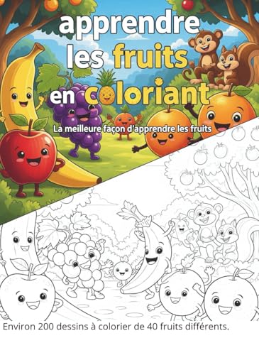 apprendre les fruits en coloriant: La meilleure façon de connaître les fruits. Environ 200 dessins à colorier de 40 fruits différents