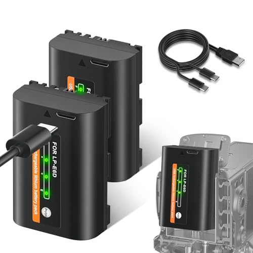 2 x Shentec Batería LP-E6 para Canon LP-E6 LP-E6N Canon R5ii EOS 5D Mark II DS Mark III 5D Mark IV 5DS 5DS R 6D 7D 7D Mark II 80D 70D 60D 60Da