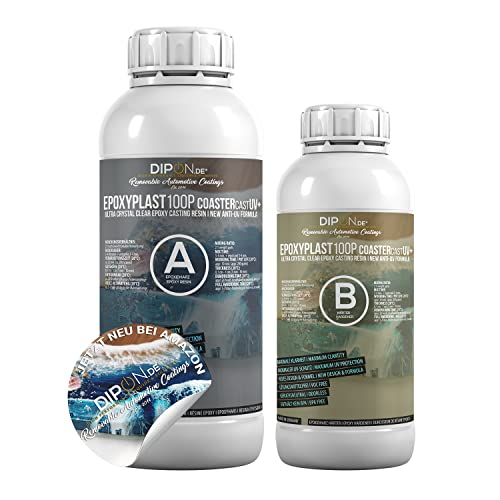 Epoxiharts Epoxiplast 100P CoasterCast UV 1,5 kg set I glasklar och bubbelfritt I maximalt UV-skydd I BPA-fri giftfri I Lämplig för hartskonst bokmärken hänge underlägg I premiumkvalitet