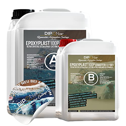 Epoxiharts Epoxiplast 100P CoasterCast UV 10,5 kg set I glasklar och bubbelfritt I maximalt UV-skydd I BPA-fri giftfri I Lämplig för hartskonst bokmärken hänge underlägg I premiumkvalitet