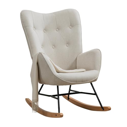 MEUBLE COSY Skandinavisk gungstol för amning gungstol för fritid och vila i lapptäcke, med massiva träben i metall, för vardagsrum, sovrum, 69 x 85 x 97 cm