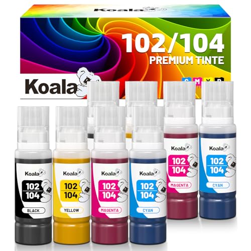 Koala 102 104 bläck kompatibel med Epson 102/104 bläckpatroner för ET-2710 ET-2720 ET-2750 ET-2810 ET-2820 ET-2850 ET-3700 ET-3750 ET-3850 ET-4700 ET-4750 ET-4800 ET-4850 (8 x 70 ml)