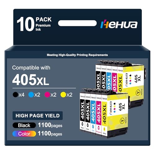 hehua 405XL skrivarpatroner Multipack Kompatibel för Epson 405XL Svart 405 XL bläckpatroner 405 för Epson WF-4820 WF-4825 WF-4830 WF-3820 WF-3825 WF-7310 WF-7830 WF-7835 WF-7840 WF-7310 (10 Pack)