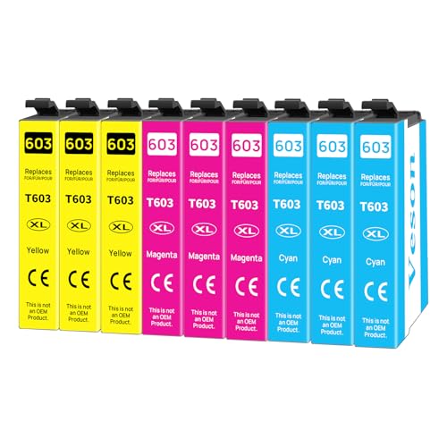 Veson 603XL Kompatibla bläckpatroner för Epson 603 XL för Expression Home XP-2100 XP-2105 XP-2150 XP-3100 XP-4100 XP-4105 XP-3105 XP-4155 WF-2830 WF-2810 WF-2850 (3 cyan, 3 magenta, 3 gul)