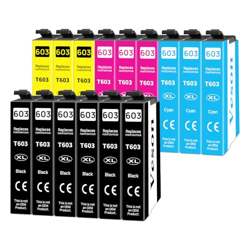 Veson 603XL Kompatibla bläckpatroner för Epson 603 XL för Expression Home XP-2100 XP-2105 XP-2150 XP-3100 XP-4100 XP-4105 XP-3105 XP-4155 WF-2830 WF-2810 WF-2850 WF-2835 WF-2870 (15-pack)